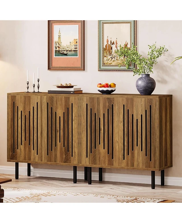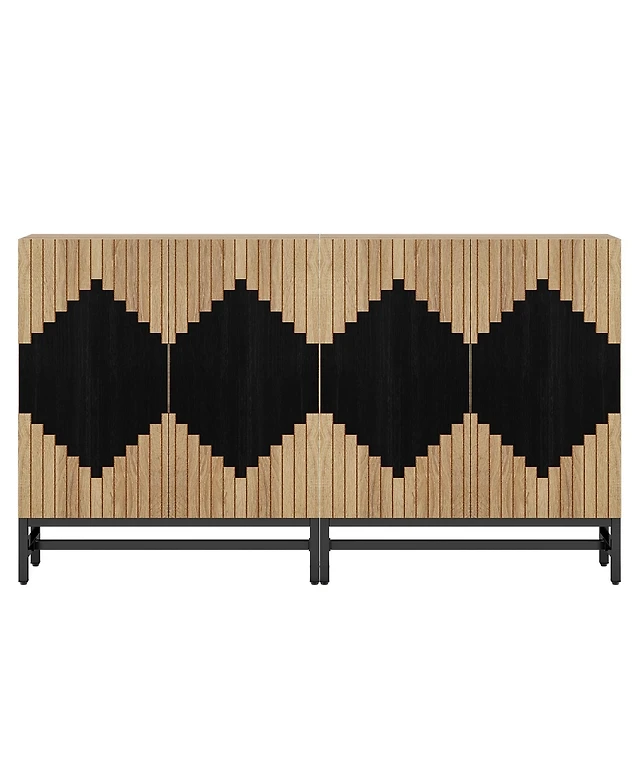 gaomon Buffet Cabinet,Rattan Accent Storage Cabinet with 4 Doors and Shelf, Sideboard Buffet Cabinet with Storage