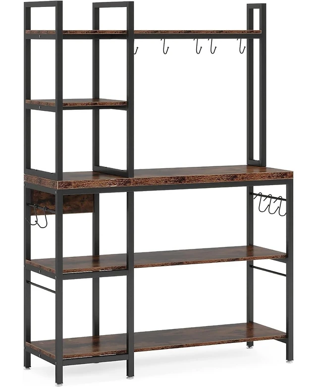 Tribesigns Bakers Rack with Storage for Kitchen 43 Inch Wide Large Racks Shelves, 5-Tier Tall Utility Shelves Organizers and 10 Hooks