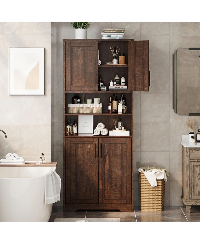 Casainc 64" Tall Bathroom Storage Cabinet with Adjustable Shelves, Laundry Hamper & Hidden Storage