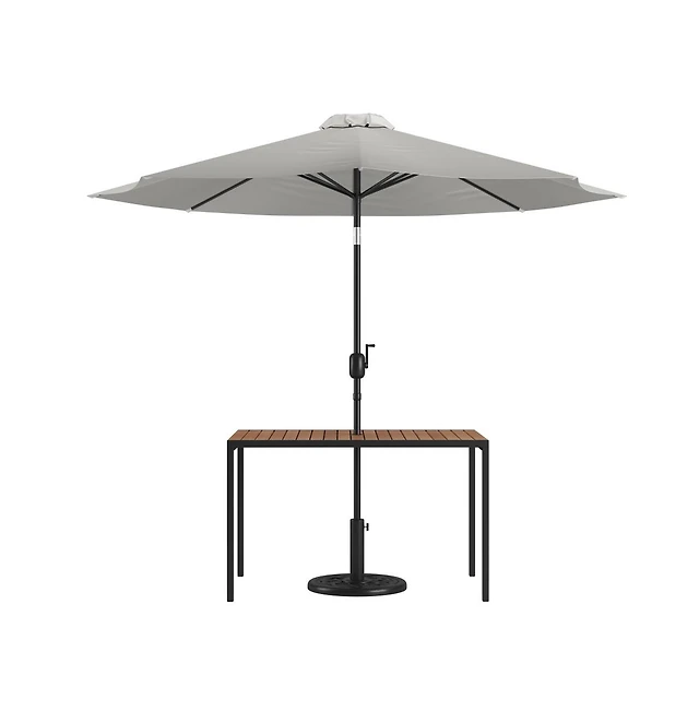 Gymax 54.5'' x 27.5'' Patio Dining Table w/ Teak Painting 2'' Umbrella Hole for Balcony