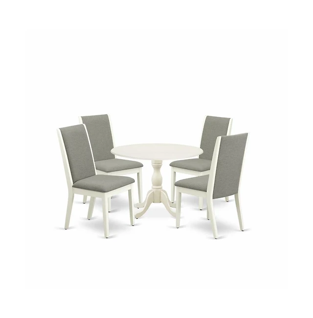 East West Furniture 5-Piece Modern Dining Table Set- 4 Dining Room Chairs and Breakfast Table - Linen Fabric Seat and Slatted Chair Back