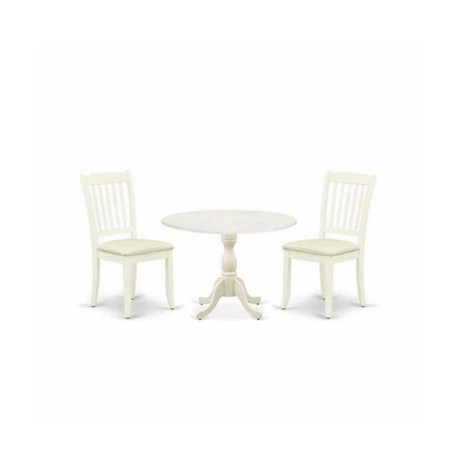 East West Furniture 3 Piece Modern Dining Table Set - Linen White Breakfast Table and 2 Linen White Dining Chairs with Slatted Back