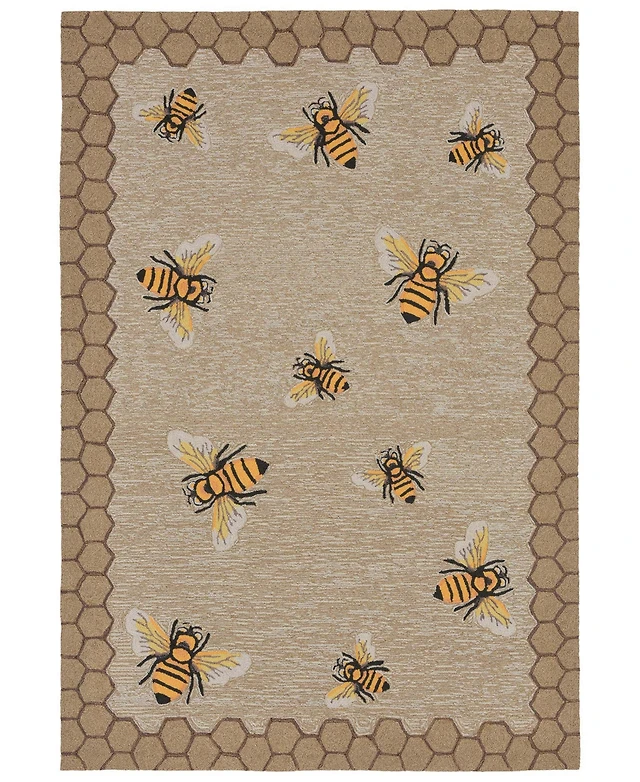 Liora Manne Front Porch Indoor Outdoor Honeycomb Bee Natural Area Rugs