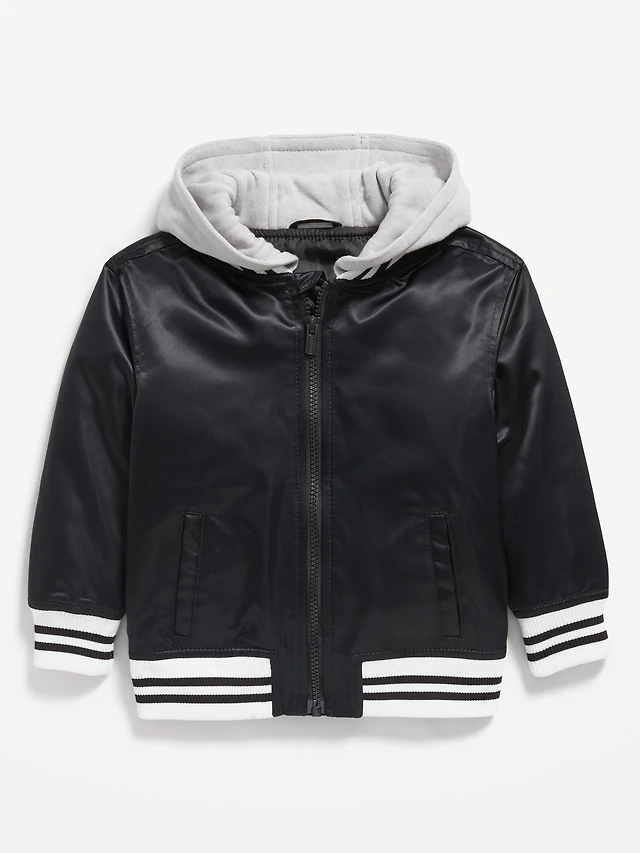 Hooded Zip-Front Satin Bomber Jacket for Toddler Boys