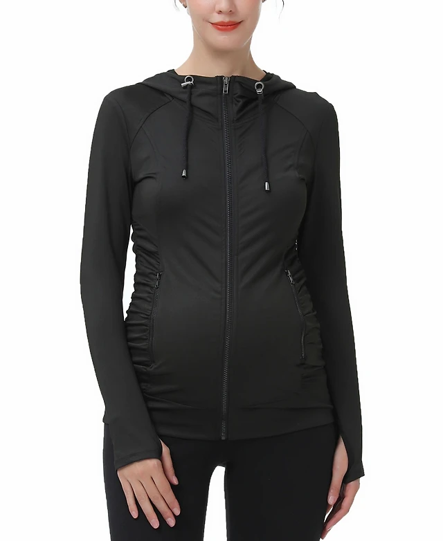 Olsen Women's Zip Front Mixed Media Hooded Jacket