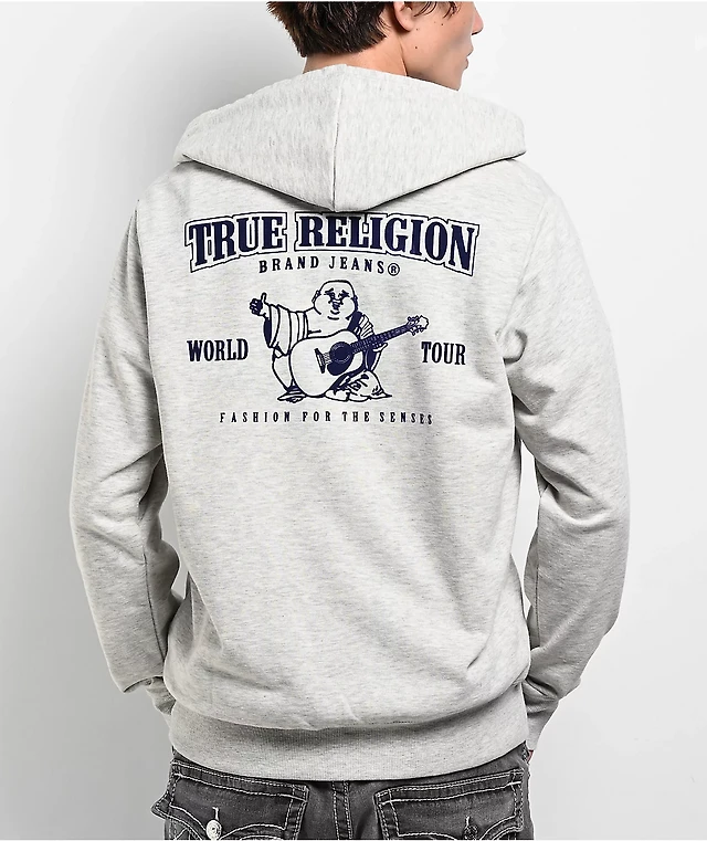 True Religion Classic Logo Heather Grey Zip Hoodie
