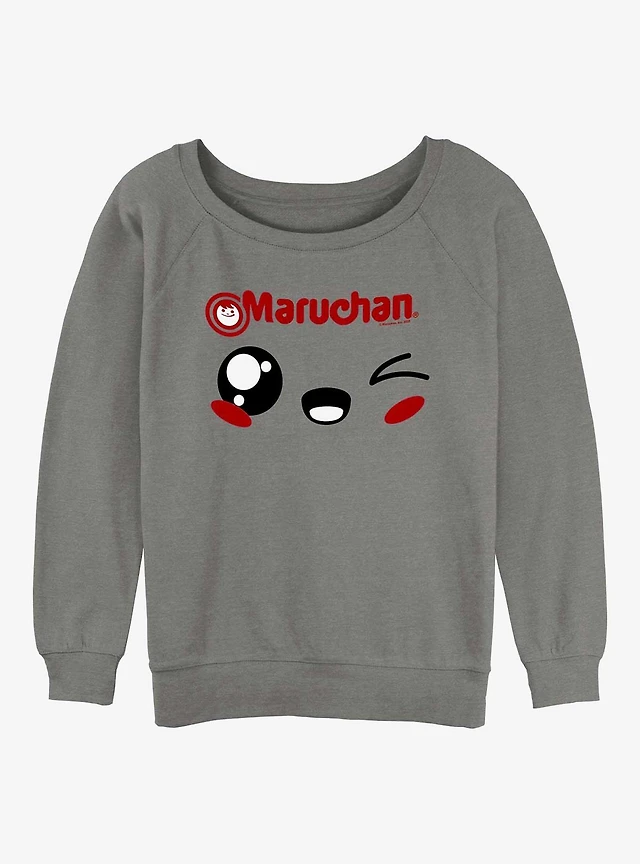 Maruchan Kawaii Wink Face Girls Slouchy Sweatshirt