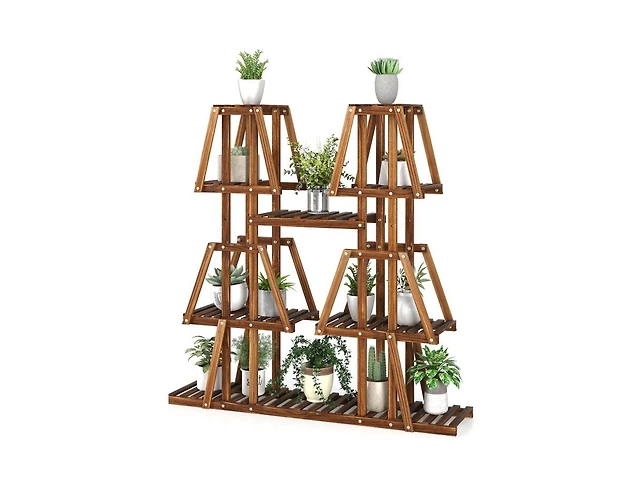5-Tier 10 Potted Wood Plant Stand for Multiple Plants