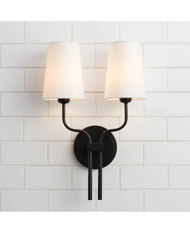 Melody Modern Wall Sconce Lighting Sconce Black Hardwired 19 1/2" High 2-Light Fixture White Linen Shade for Bedroom Bedside Living Room Home Hallway
