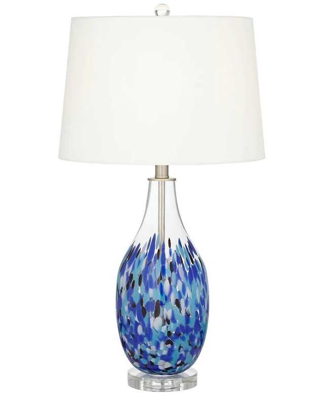 360 Lighting Carlton Modern Coastal Table Lamps 28" Tall Set of 2 Swirling Blue Faux Marble White Tapered Drum Shade for Bedroom Living Room Beds