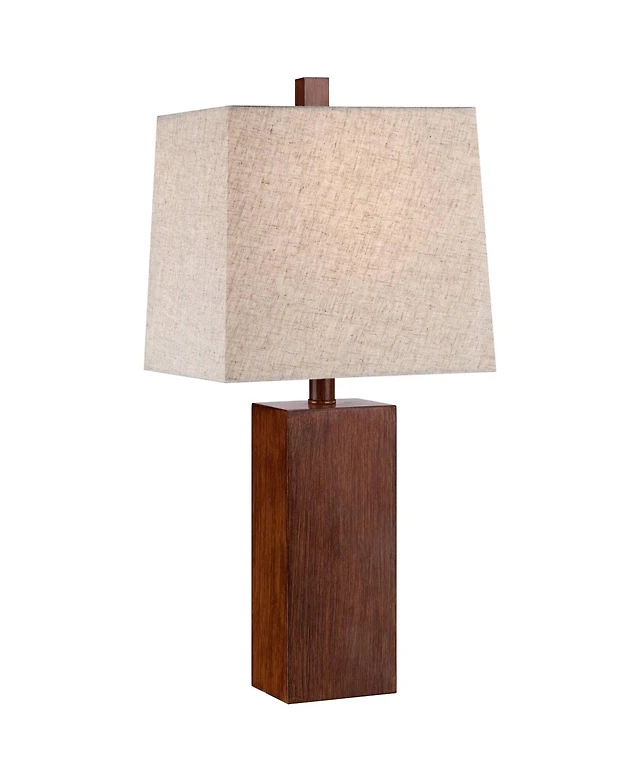 360 Lighting Fraiser Modern Accent Table Lamp 23 1/2" High Brown Faux Wood Oatmeal Drum Shade for Bedroom Living Room Bedside Nightstand Office K