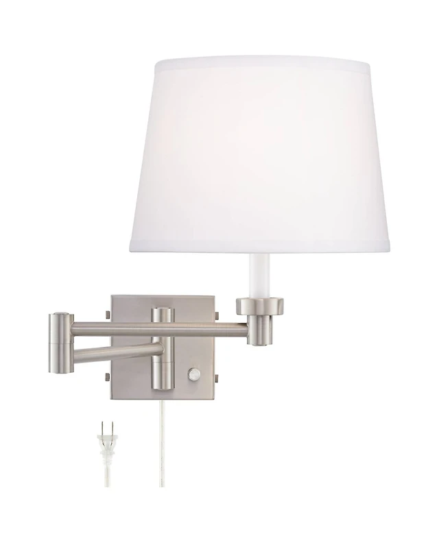 360 Lighting Oray Modern Swing Arm Wall Lamps Set of 2 Brushed Nickel Plug-in Light Fixture Off White Cotton Drum Shade for Bedroom Living Room House