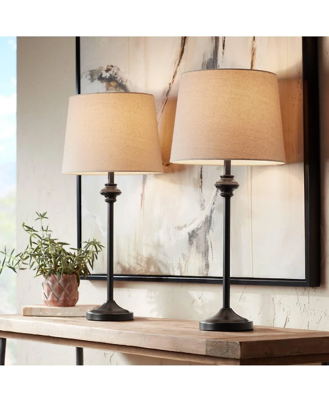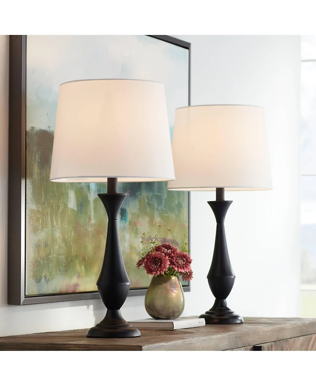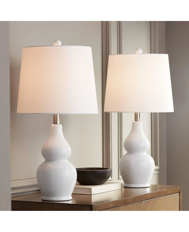 360 Lighting Ledger Modern Accent Table Lamps 21 3/4" High Set of 2 Mercury Glass with Usb Charging Port Off-White Drum Shade for Family Office D