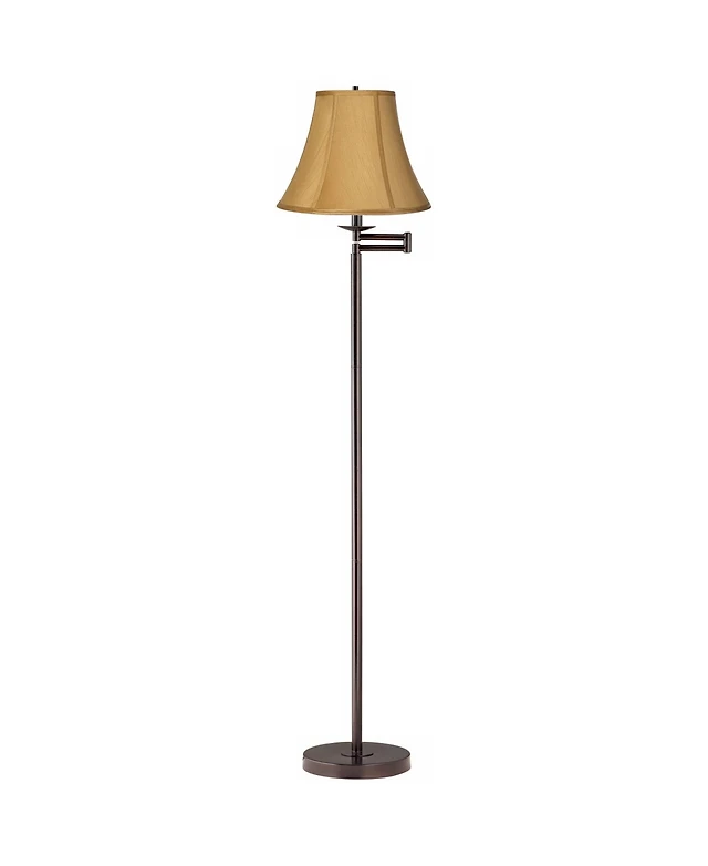 360 Lighting Swing Arm Floor Lamp 60.5" Tall Bronze Rust Fabric Shade with Gold Trim for Living Room Reading Bedroom Office