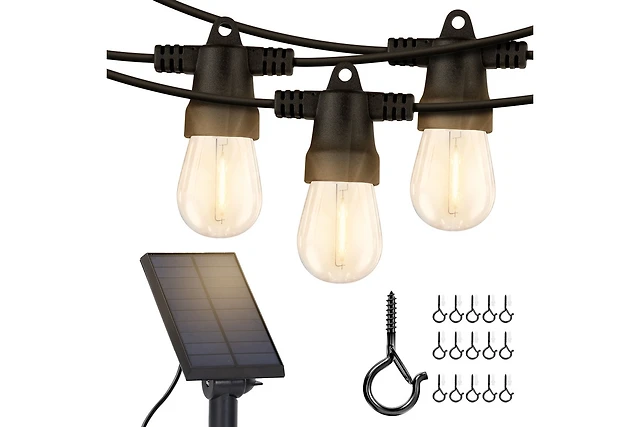 Ambience Pro Heavy Duty Solar-Powered Led Outdoor String Lights with 15 Hooks, 1W, Soft White (27 ft.)