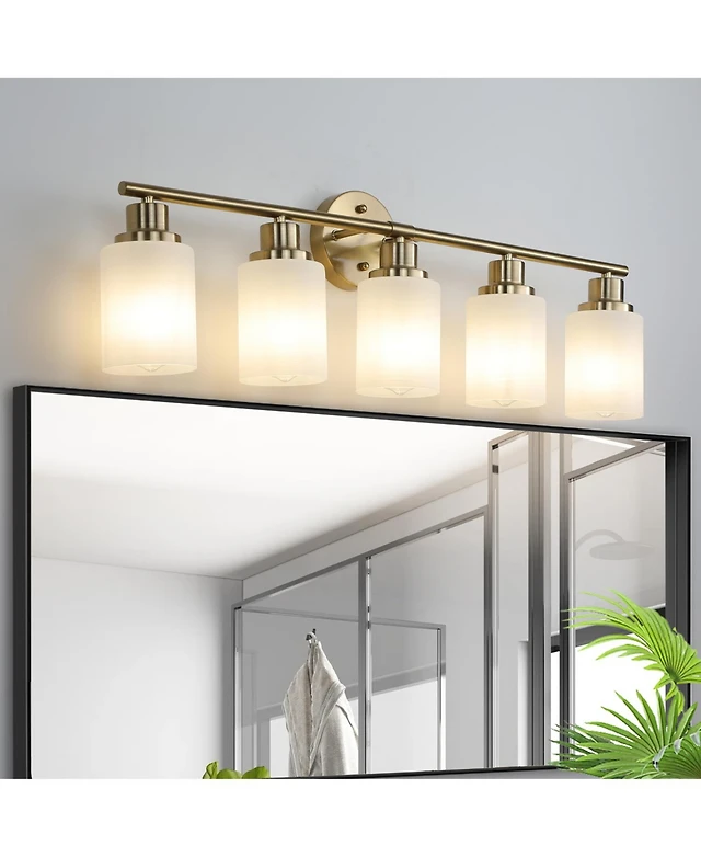 Streamdale 5-Light Golden Bathroom Vanity Light Fixture, Frosted Glass Shades, Modern Wall Mounted Lighting (No Bulbs)