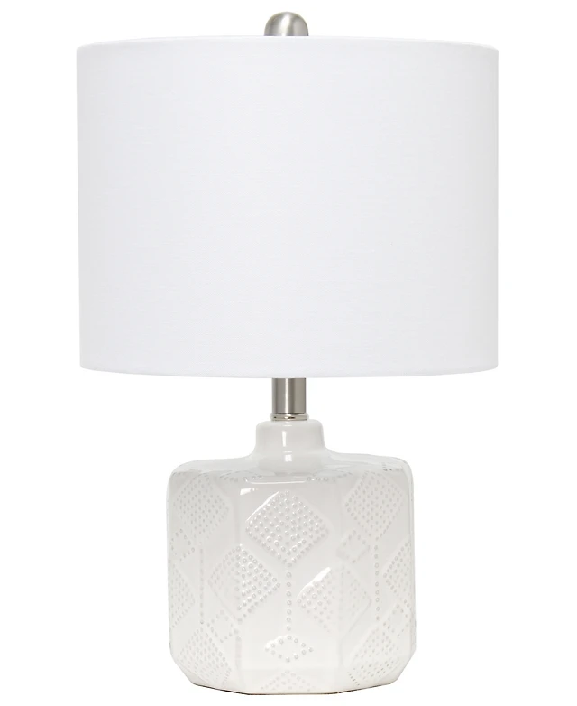 Springcrest White with Paisley Print Medium Drum Lamp Shade 14" Top x 16" Bottom x 11.5" High (Spider) Replacement with Harp and Finial