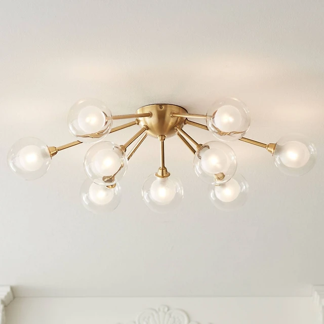 Possini Euro Design Nor Vintage-like Ceiling Light Semi Flush-Mount Fixture 18" Wide Warm Antique Brass 4-Light Soft Gold Organza Drum Shade for Bedro