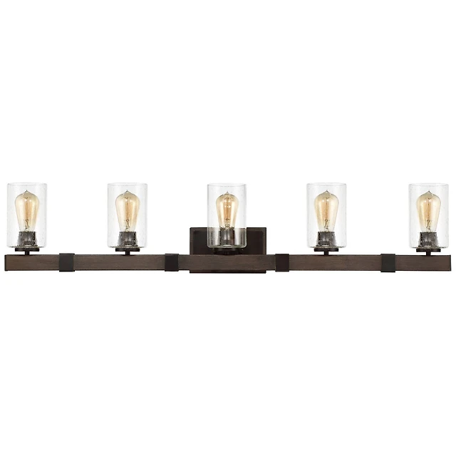 Franklin Iron Works Poetry Rustic Industrial Wall Light Wood Grain Bronze Hardwire 44" 5-Light Fixture Clear Seedy Glass for Bedroom Bathroom Van
