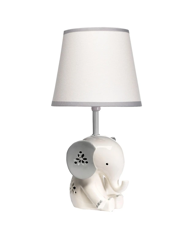 Lambs & Ivy Playful Elephant Blue/White Nursery Lamp with Shade and Light Bulb