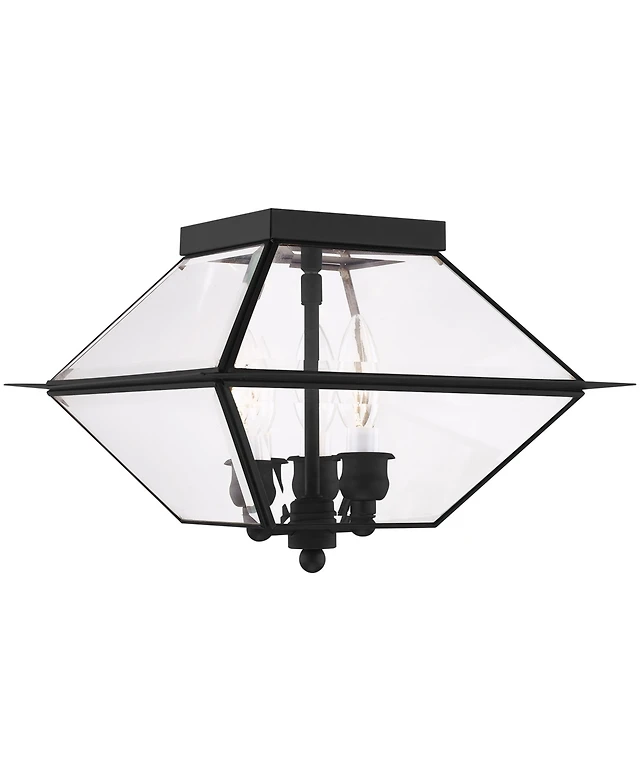 Nola 13" 3-Light Bohemian Farmhouse Iron, Seeded Glass Led Semi Flush Mount