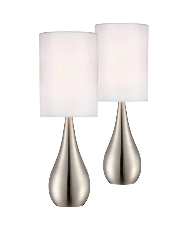 360 Lighting Zofia Modern Accent Table Lamps 13" High Set of 2 Brushed Nickel Silver Tapered Metal Touch On Off White Fabric Drum Shade for Bedro