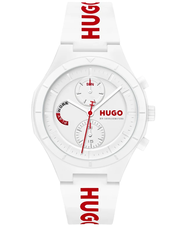 Hugo Boss Men's Lit Multi Quartz Multifunction White Silicone Watch, 44mm