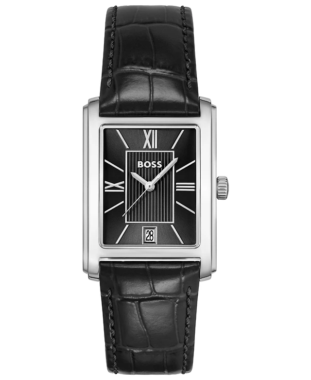Hugo Boss Men's Grand Prix 44 Quartz Chronograph Black Leather Watch, 44.50mm