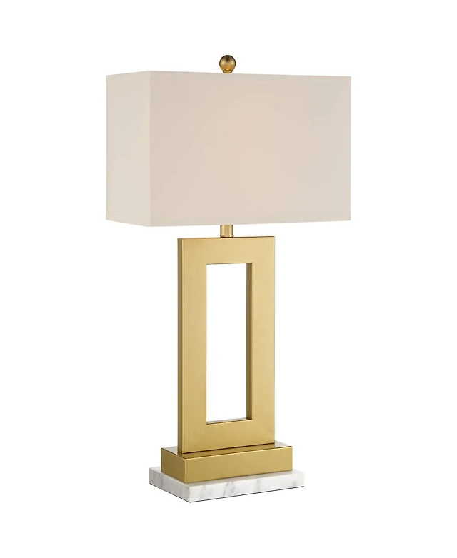 360 Lighting Marshall Modern Table Lamp with White Marble Riser 30" Tall Champagne Gold Oatmeal Shade for Bedroom Living Room Bedside Nightstand House