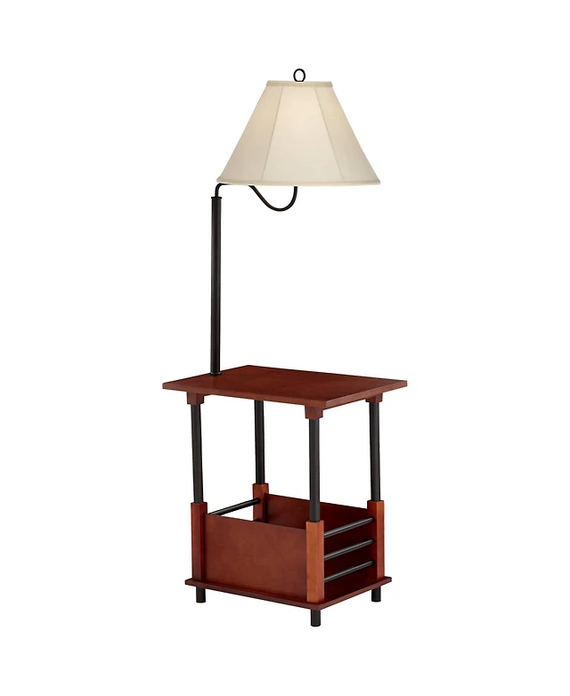 Regency Hill Marville Mission Rustic Farmhouse Floor Lamp with End Table 55" Tall Wood Open Crate Swing Arm Off White Empire Shade for Living Roo