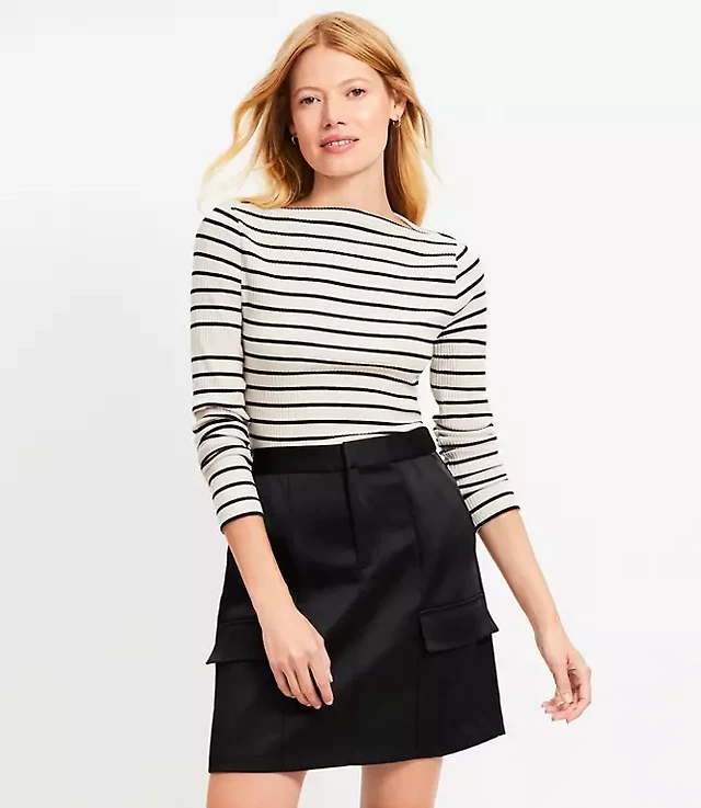 Ann Taylor Petite Striped Crossover Neck Top Size Medium Winter White-Black Women's