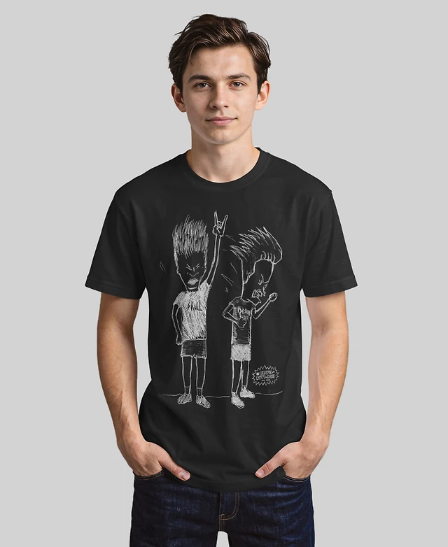 Beavis and Butthead Mtv Men's Rocking' Out Sketch Logo Short Sleeve T-Shirt
