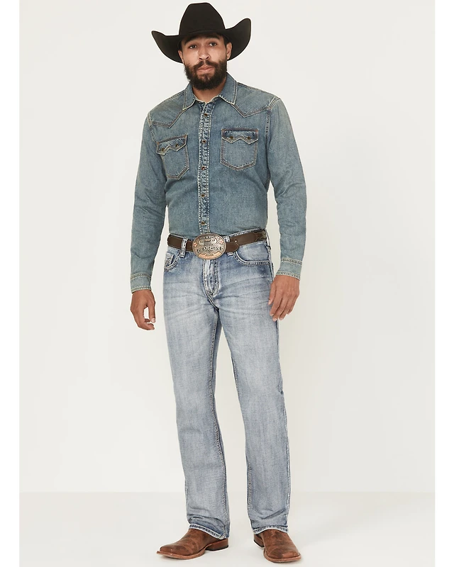 Rock & Roll Denim Men's Light Wash Double Barrel Relaxed Straight Jeans