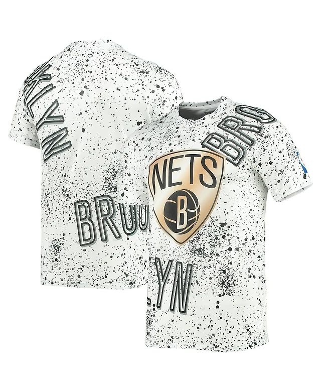 Men's White Brooklyn Nets Gold Foil Splatter Print T-shirt