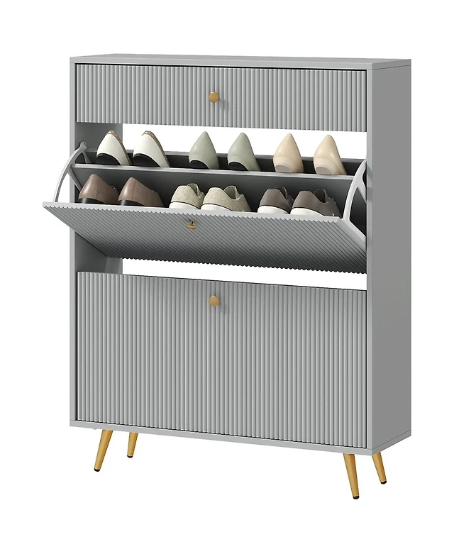 Tribesigns Tall Shoe Storage Cabinet with Doors, Farmhouse Wooden Shoe Rack with 24 Cubbies & 3 Hidden Shelves