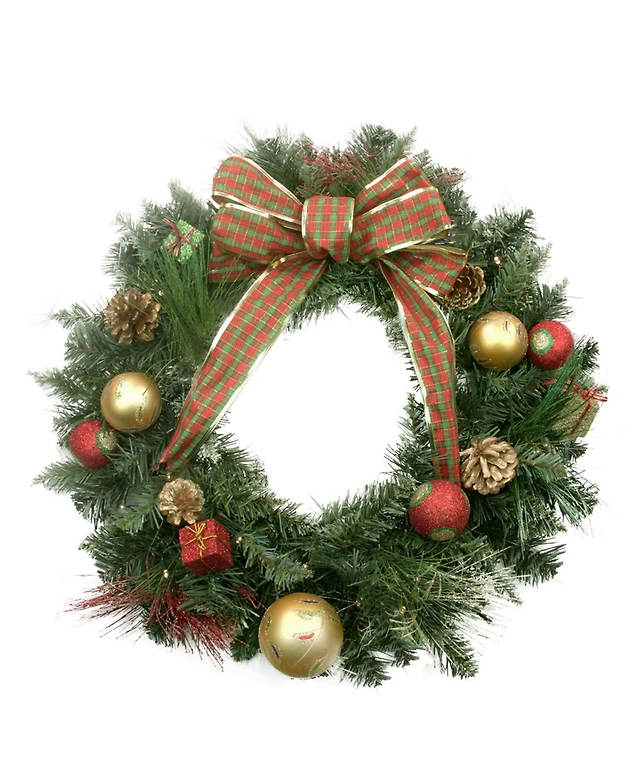 Northlight 24" Pre-Lit Decorated Pine Cone Balls and Gifts Artificial Christmas Wreath - Warm Clear Led Lights