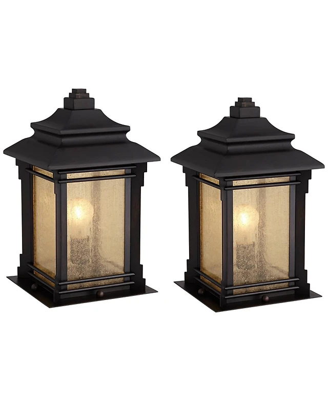 Park Sienna Rustic Vintage Outdoor Wall Light Fixtures Set of 2 Bronze Metal 16 3/4" Clear Hammered Glass Panels for Post Exterior Barn Deck Hous