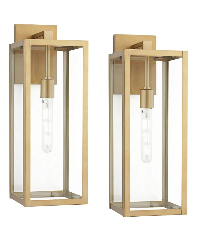Berk Modern Outdoor Wall Light Fixtures Set of 2 Textured Black Gold Metal Box Frame 16" Clear Glass Panels for Post Exterior Barn Deck House Por