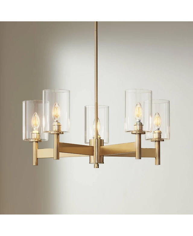 Stiffel Soft Gold Drum Pendant Chandelier 20 1/4" Wide Modern Clear Crystal 5-Light Fixture for Dining Room House Foyer Entryway