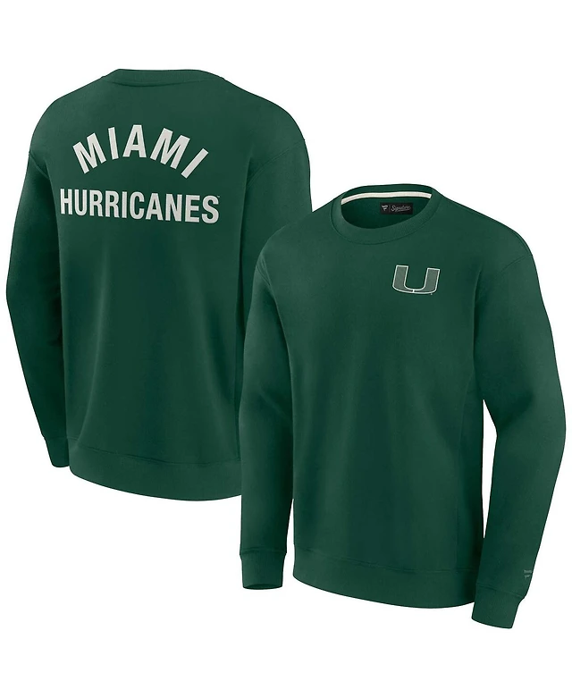Men's and Women's Fanatics Signature Green Miami Hurricanes Super Soft Pullover Crew Sweatshirt