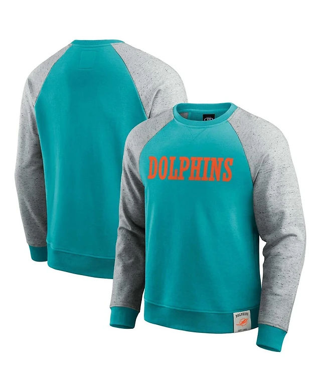 Darius Rucker Collection by Fanatics Men's Aqua/Heather Gray Miami Dolphins Colorblock Pullover Sweatshirt