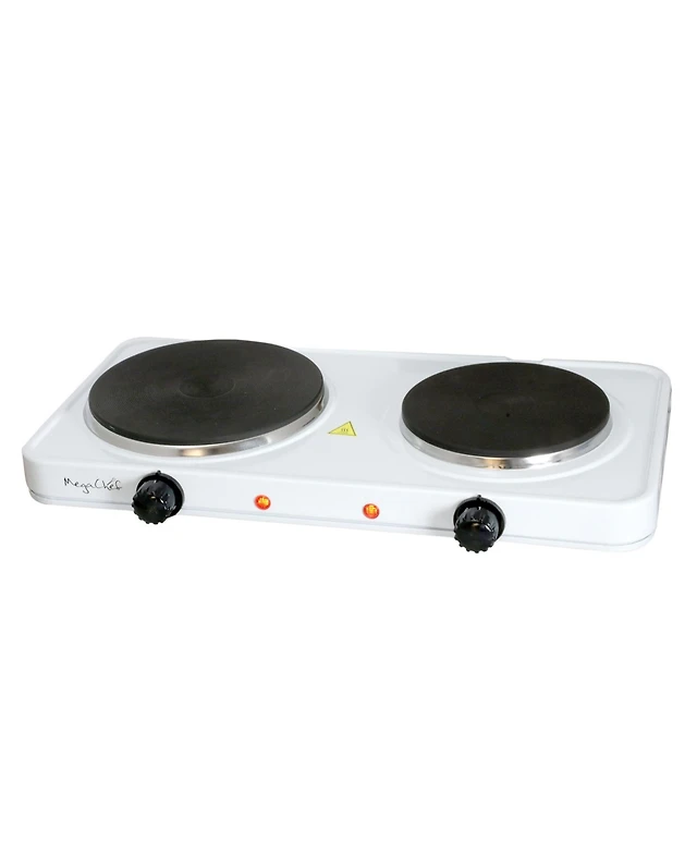 MegaChef Electric Easily Portable Ultra Lightweight Dual Coil Burner Cooktop Buffet Range in White