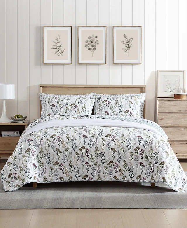 ienjoy Home Tossed Ferns Reversible 3-Pc. Quilt Set, Full/Queen