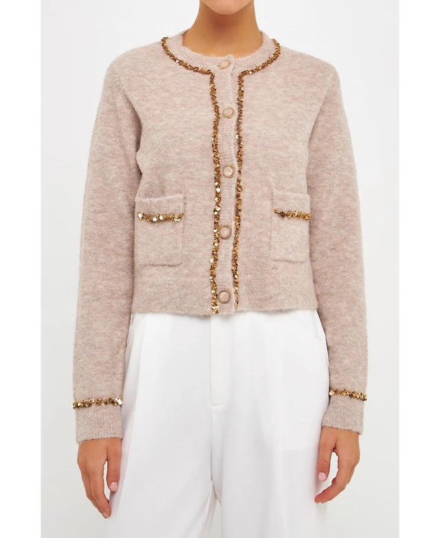 Vince Camuto Women's Crewneck Cropped Cardigan Sweater