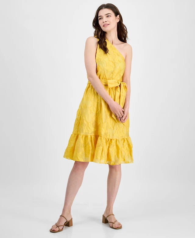 Adrianna Papell Plus Metallic Jacquard One-Shoulder Long Dress