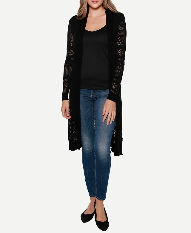 Avec Les Filles Women's Pointelle Knit V-Neck Cardigan