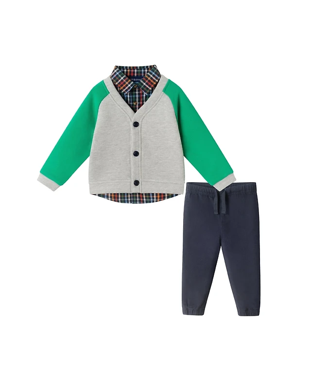 Hope & Henry Boys Organic Mock Neck Cardigan Stitch Sweater