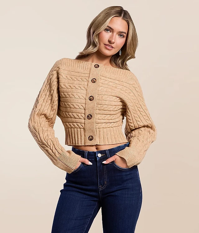 Hooked Up by Iot Juniors' Cable-Knit V-Neck Sweater