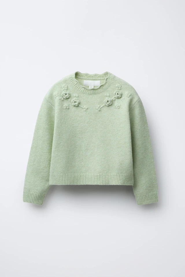 FLORAL PETER PAN COLLAR KNIT SWEATER