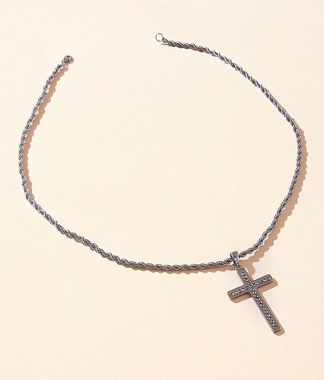 Crucifix Necklace Lord's Prayer Stainless Steel 24"